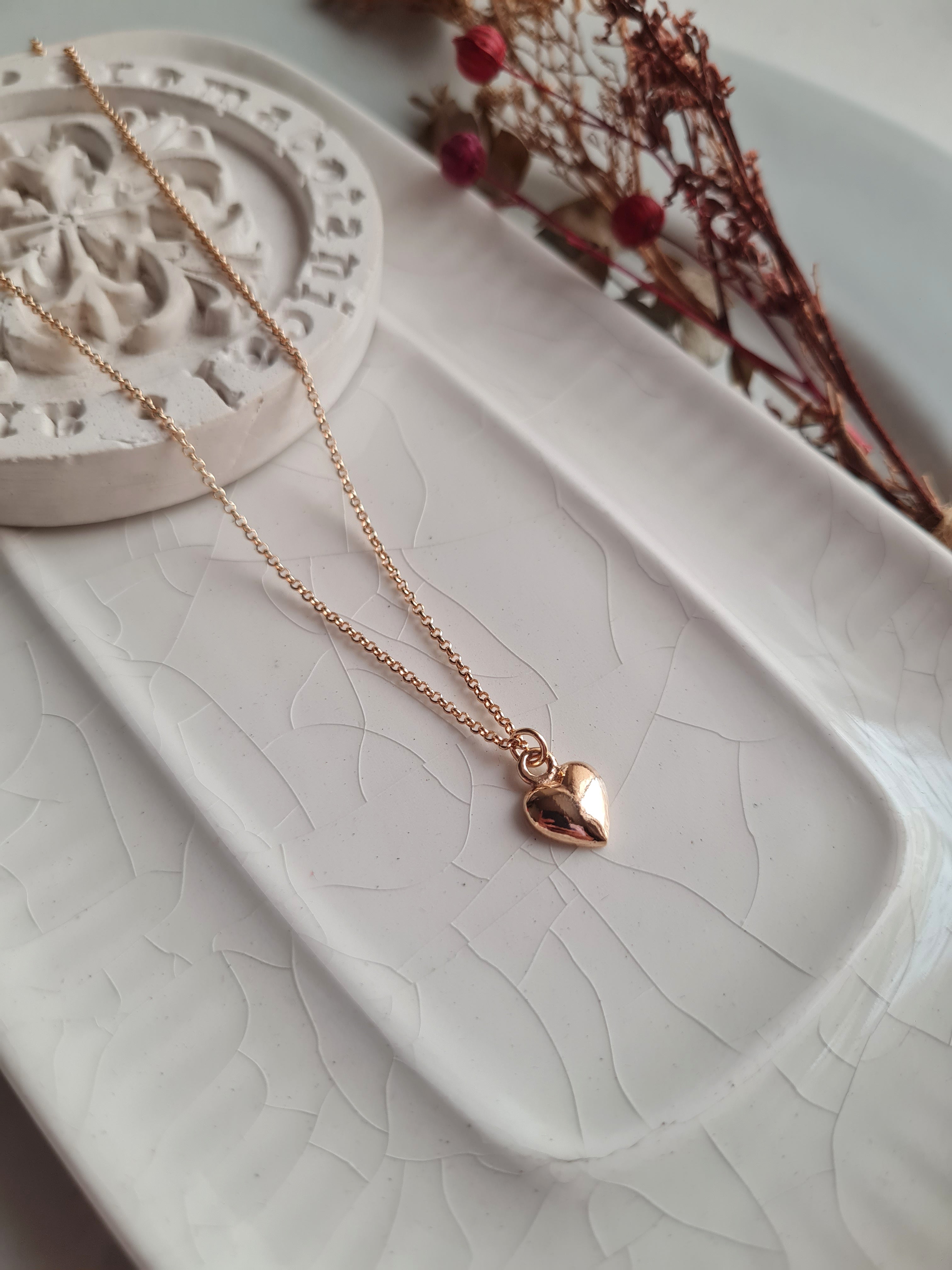 Cadena Rolo Bb con dije Corazon Semi Bombacho, plano de atrás y bombacho por adelante de Plata 925/950