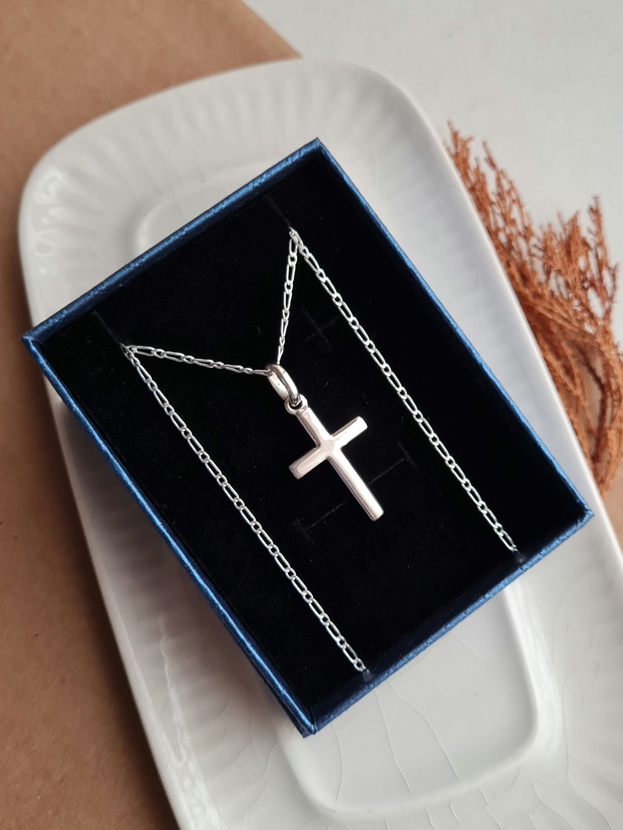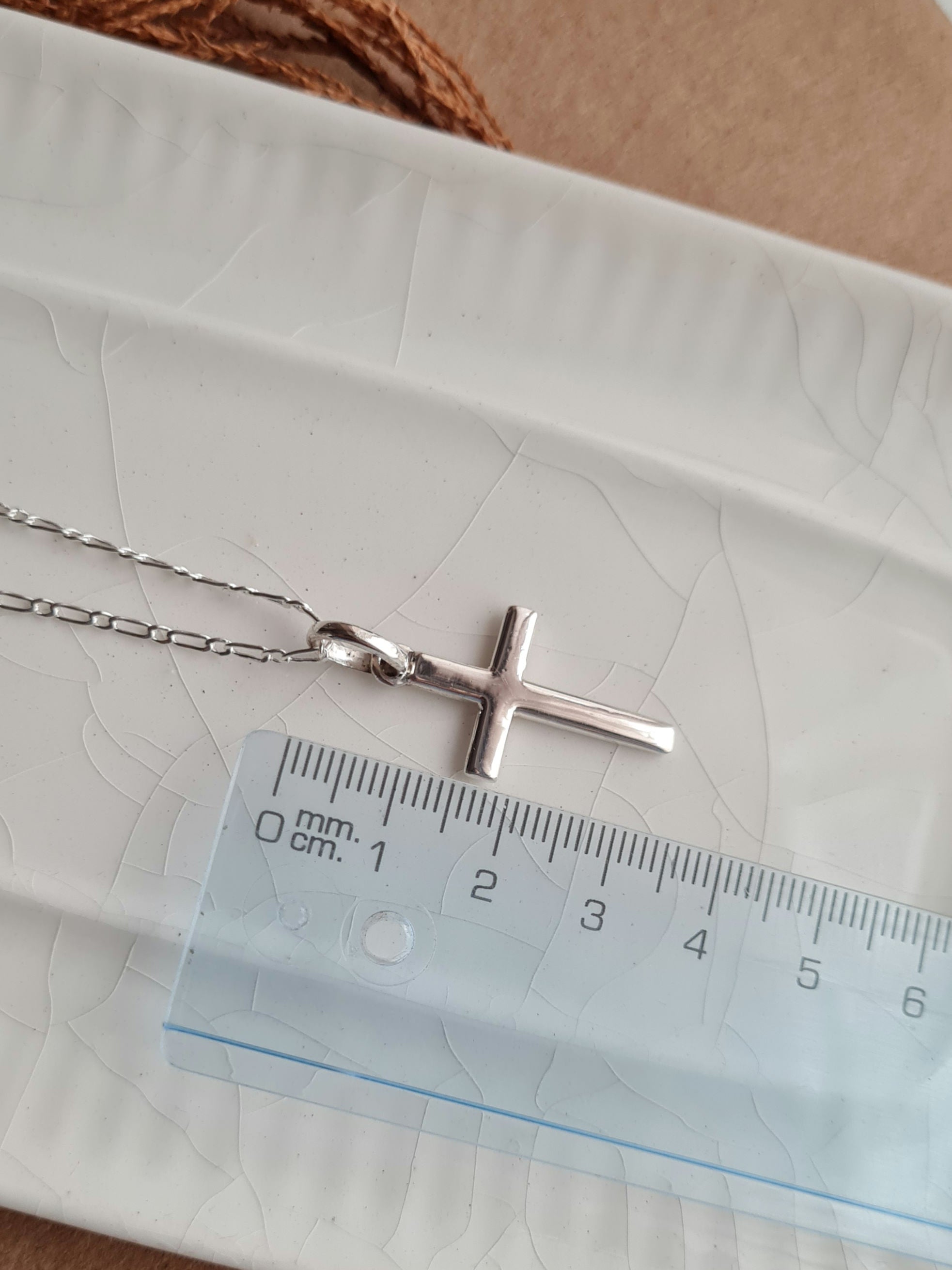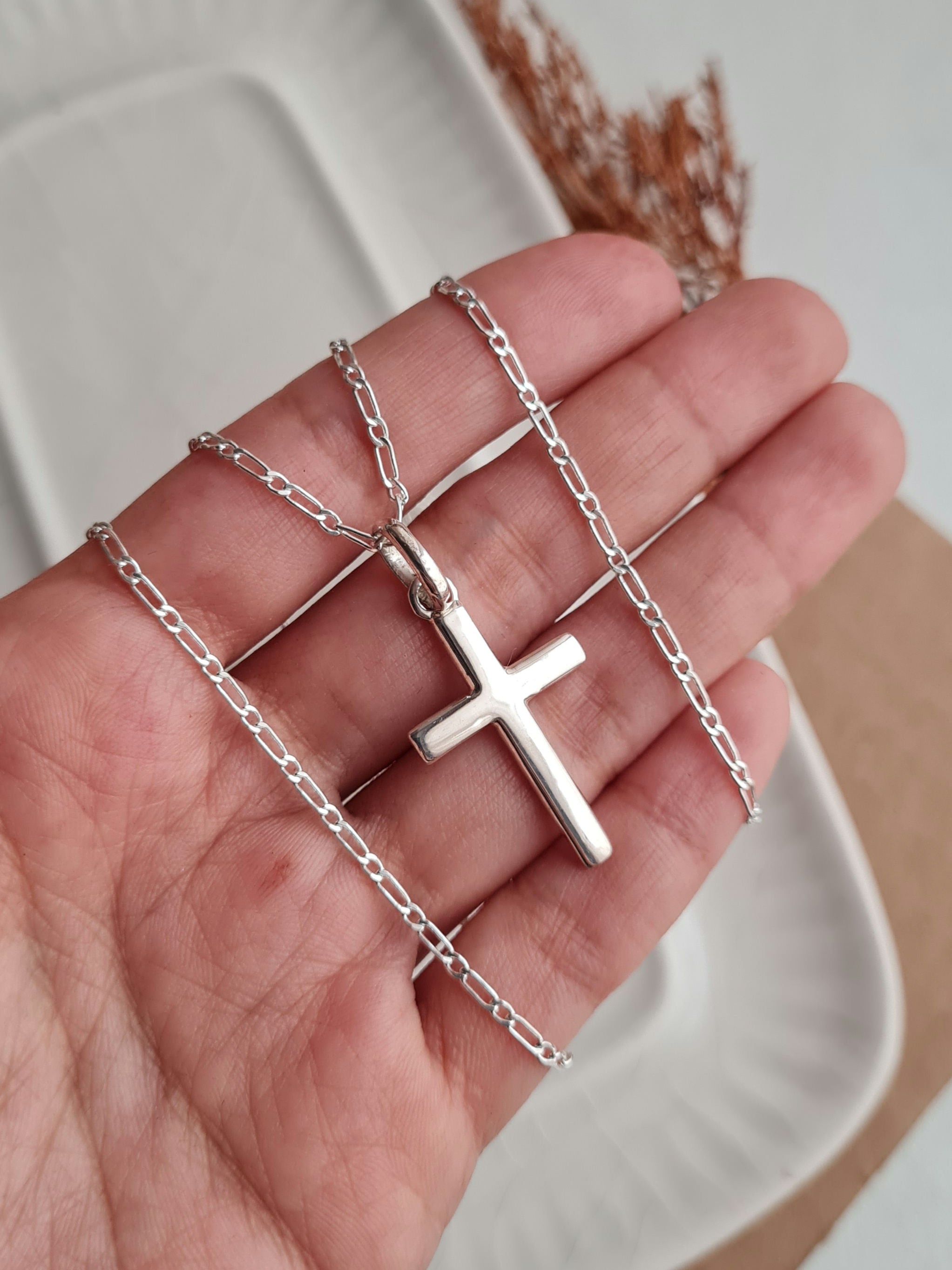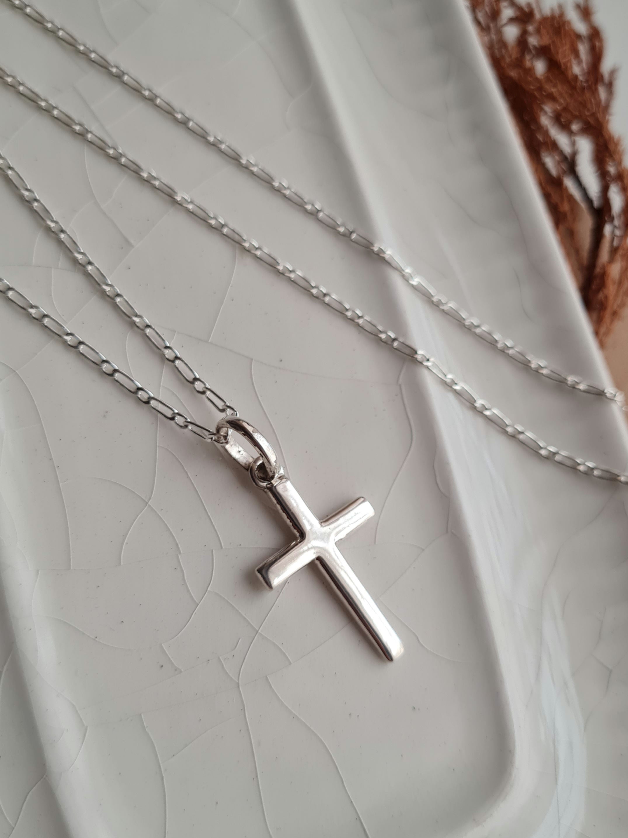 Cadena Tiffany 1.8mm ancho /60cm largo + Cruz Plana Mediana 3.5cm - Plata 925/950