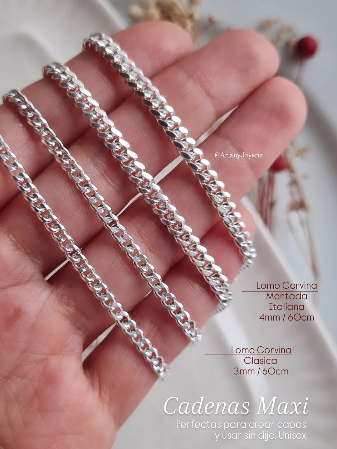 Cadena Lomo de Corvina - Plata 925, larga y perfecta para crear capas y usar sin dije