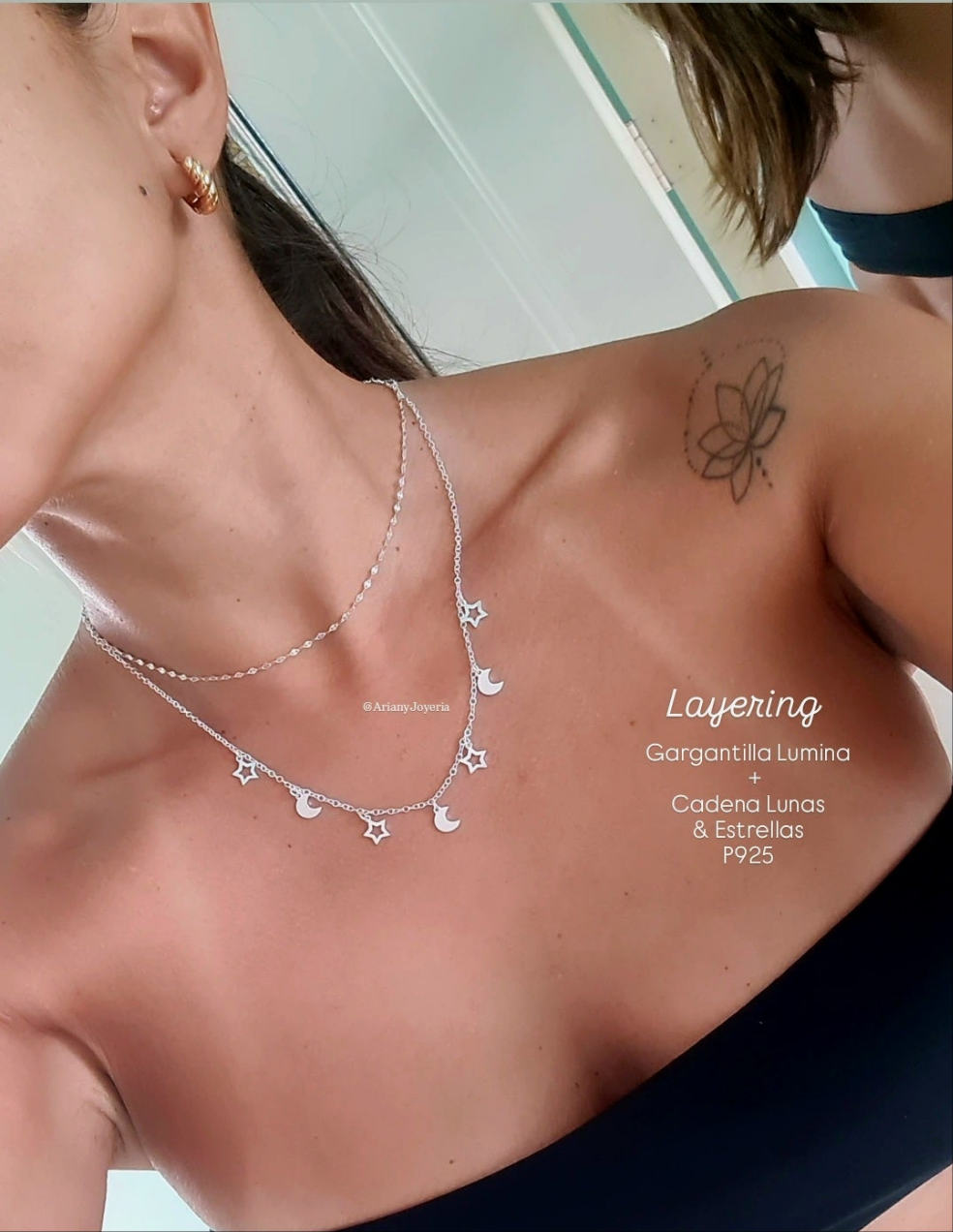 Gargantilla Lumina, brilla hermoso por las plaquitas que tiene, es divertida y moderna